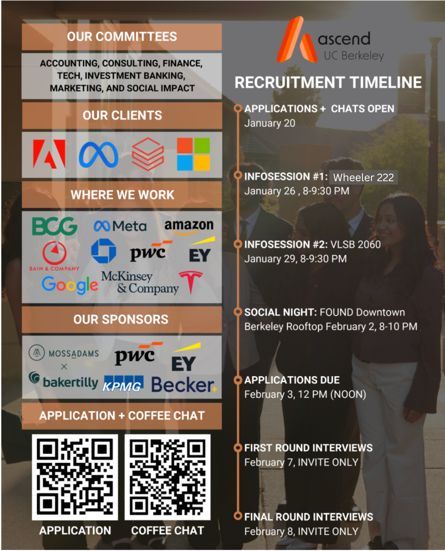 We welcome you to attend the following events to meet the officers and potentially join the Ascend family. Hope to see you there!